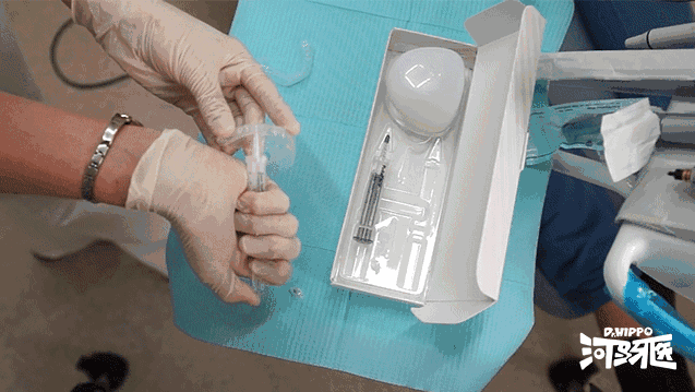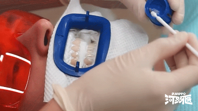 上美白剂:将包含过氧化氢 / 过氧化脲的美白剂,用小刷子涂抹在牙面上。