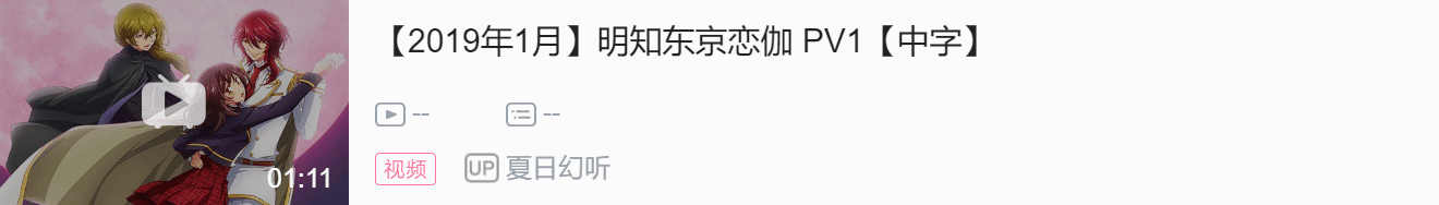 《明治东京恋伽》改编自Broccoli开发的同名恋爱游戏,动画由TMS Entertainment负责制作 ,于2019年1月9日起播出