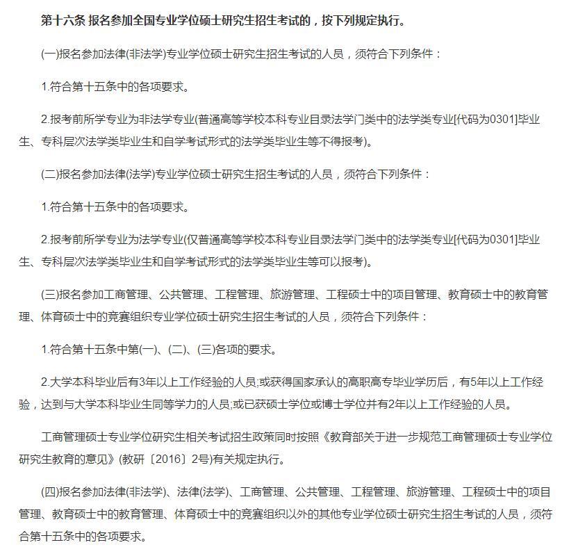 因此从报考条件来说,其首先要满足研究生的招生要求,其次再满足专硕的招生条件,小伙伴们可以登入中国研究生招生网查询,具体的专硕要求如下两图。