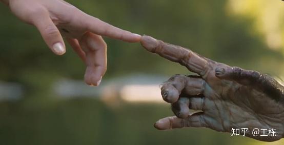 这个两指相接的场景在我看来是非常具有象征意义的,就如同上帝把人性、知识等所有美好的东西授予给了人类一样。320万年前的的始祖把她的基因传给了现在的斯嘉丽,而斯嘉丽又是使LUCY开化的那个人,而这里的bgm也叫作Lucy & Lucy。一切形成了一个完美和谐的圆,一个循环。Pass it on。完美的主题体现。