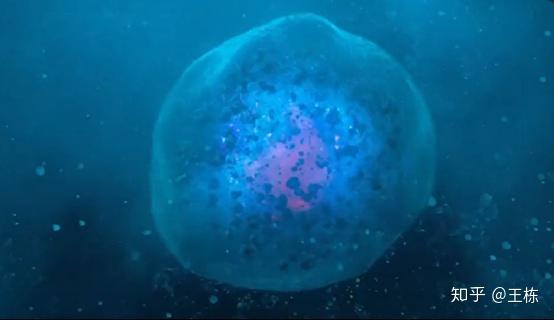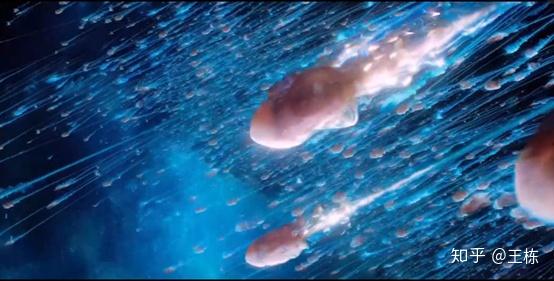 应该是映射卵子受精的场景,但很奇怪的一件事是前面的时间顺序其实都是在逆行:从现在一直到远古,再到月球诞生等等。但是这里精子的游向其实是正向的,说明时间顺序是正向的。结合后面两个场景思考: