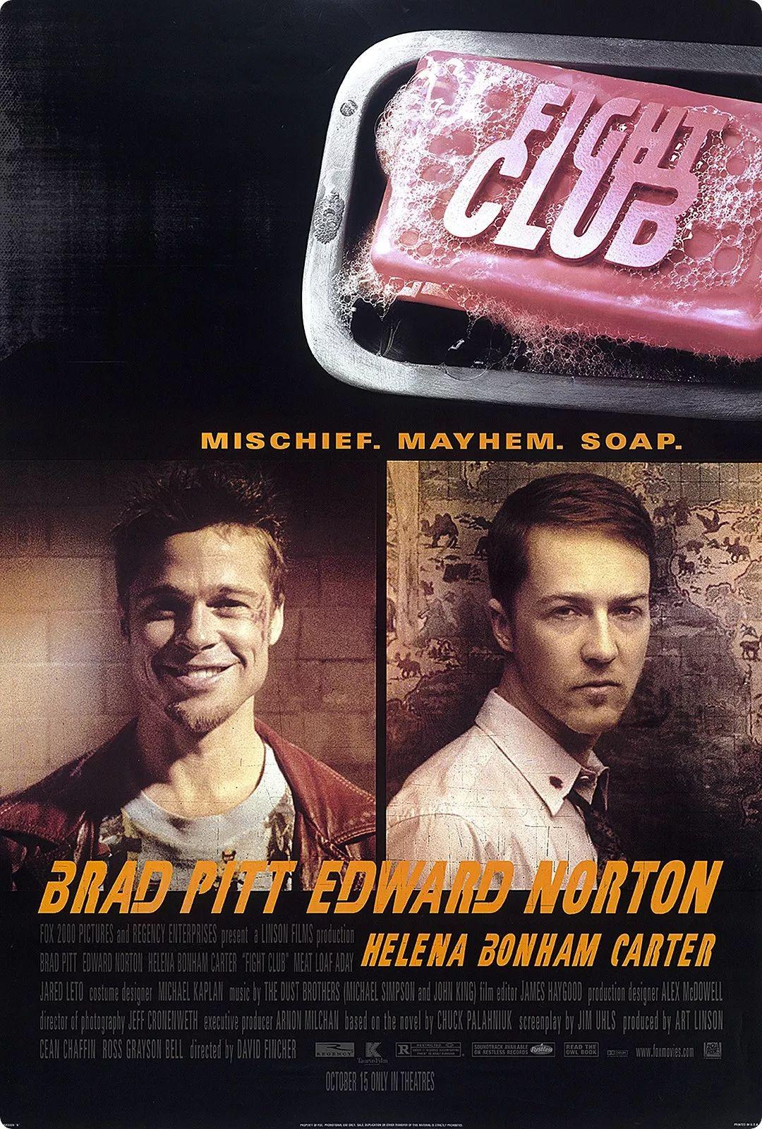 《搏击俱乐部》改编自恰克·帕拉尼克的同名小说,讲述了生活苦闷的泰勒为了找寻刺激与好友杰克组成“搏击俱乐部”,在那里他们可以把一切不快的情绪宣泄,借着自由搏击获得片刻快感的故事。
