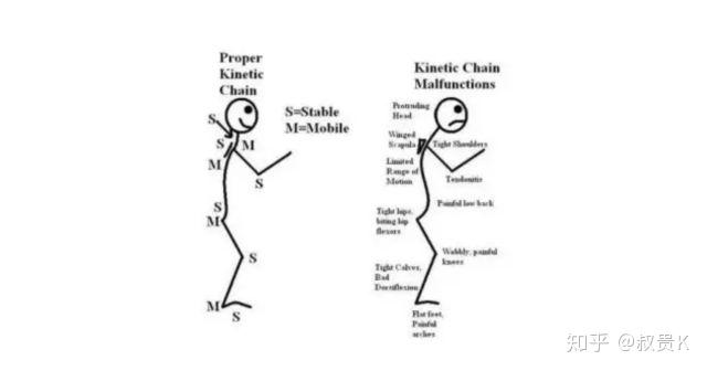 在做运动(跑、跳、蹲、推、拉、旋转)的时候,他们的颈椎,胸椎,肩关节,肩胛骨,肘关节,腰椎,髋关节,膝关节,脚踝都应该是相互配合,共同传导发力的。