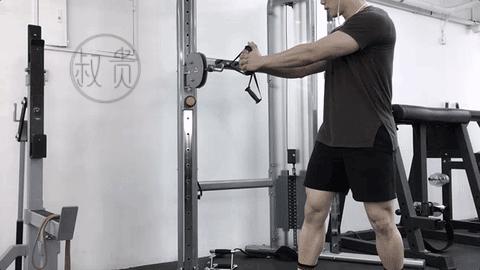 用之前的呼吸技术固定骨盆,通过龙门架带来的侧面阻力影响身体的稳定,前后推动把手并且保证身体不要晃动。