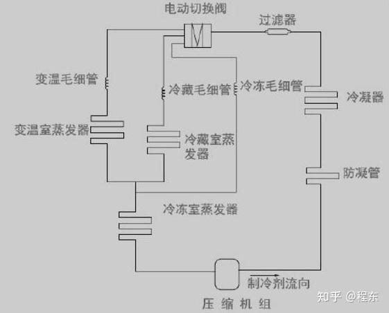 主要针对风冷冰箱或混冷冰箱来说,分为单循环,双循环,多循环。