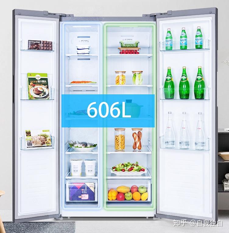双开门大冰箱,分区储存606L大容量,分开存放不同的食材,保证食材不窜味,每个区域都清爽新鲜。内部抽屉也可以顺利拉开,节省出更多的空间,同时还能非常直观地查看各种食物的状态。