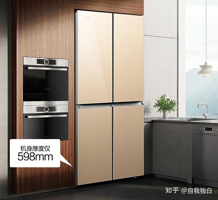 这款冰箱是四开门的,看起来很霸气,家里人多可以选择这款冰箱。我外婆家买的就是这个冰箱,用起来整体感觉很不错。自从有了这款冰箱,瞬间感觉我外婆挤入了富婆行业。机身还非常纤薄,可以轻易地嵌入厨房,减少厨房占地面积。