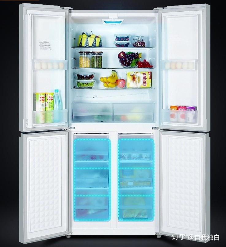 - 优点:比法式开门冰箱多出制冰室和保鲜冻结室,功能上更丰富。在食材存放管理上更加精细,更符合亚洲人的使用习惯。美观大气。
