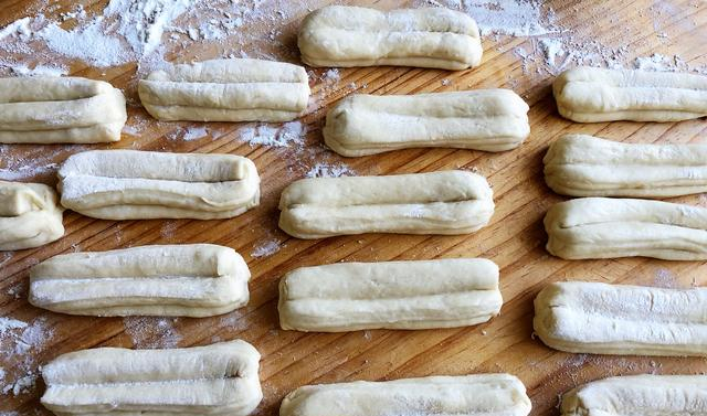 7:两个长条为一组,用筷子中间按一下,两头捏紧,我喜欢一次性做完,然后再去炸
