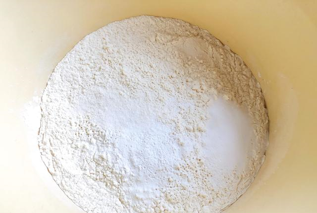 制作方法:1:把面粉放入一个大的和面盆里,然后再依次加入食盐,小苏打,泡打粉。