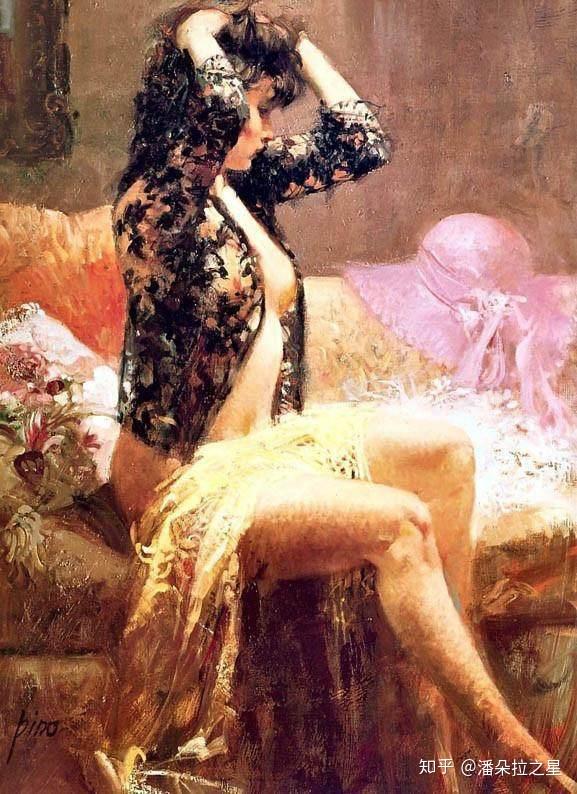 皮诺.德埃尼 Pino Daeni (Giuseppe Dangelico) 1939- ,意大利当代画家。1939 年出生在意大利 。 毕业于巴里艺术学院,后又就读于米兰的布雷拉美术学院。 在那里他在拉菲尔前派和马奇由里的影响下潜心研究人体的结构,进一步完善自己的画技。