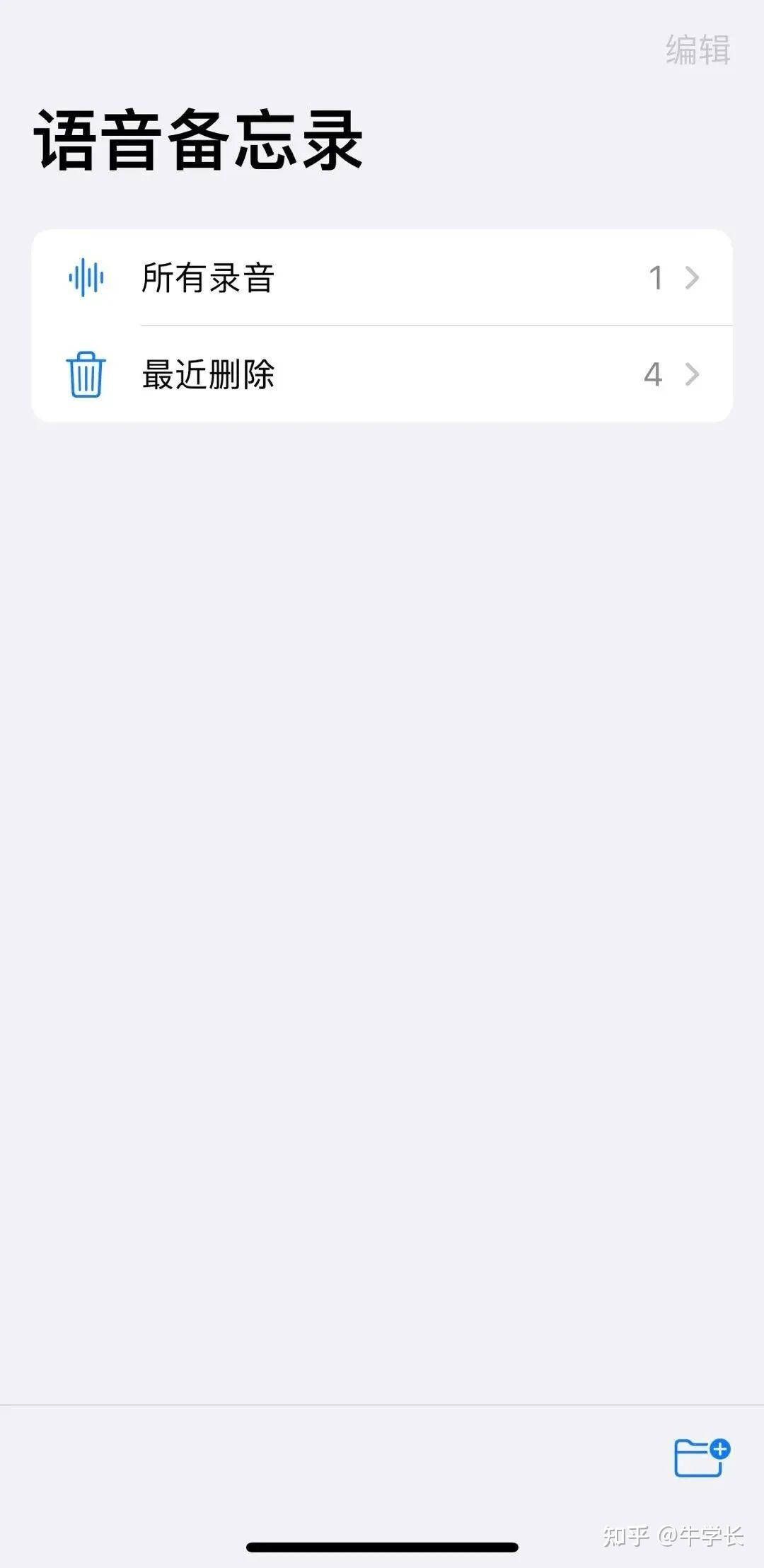 如果不小心左滑将录制好的音频文件删除了,还可以通过【语音备忘录】自带的 “最近删除” 文件夹,将30天内误删的音频文件重新恢复。