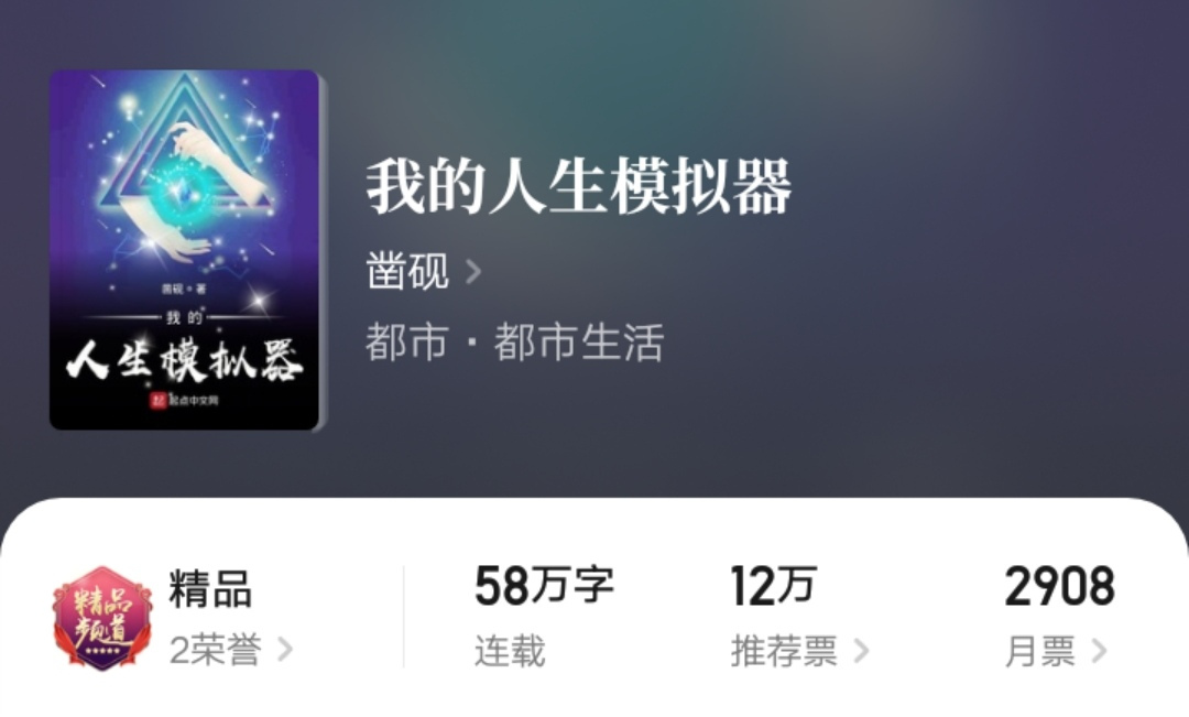 小说我曾经试读过,不过已经想不起具体的内容了,只记得了主角的这个逆天外挂——人生模拟器。