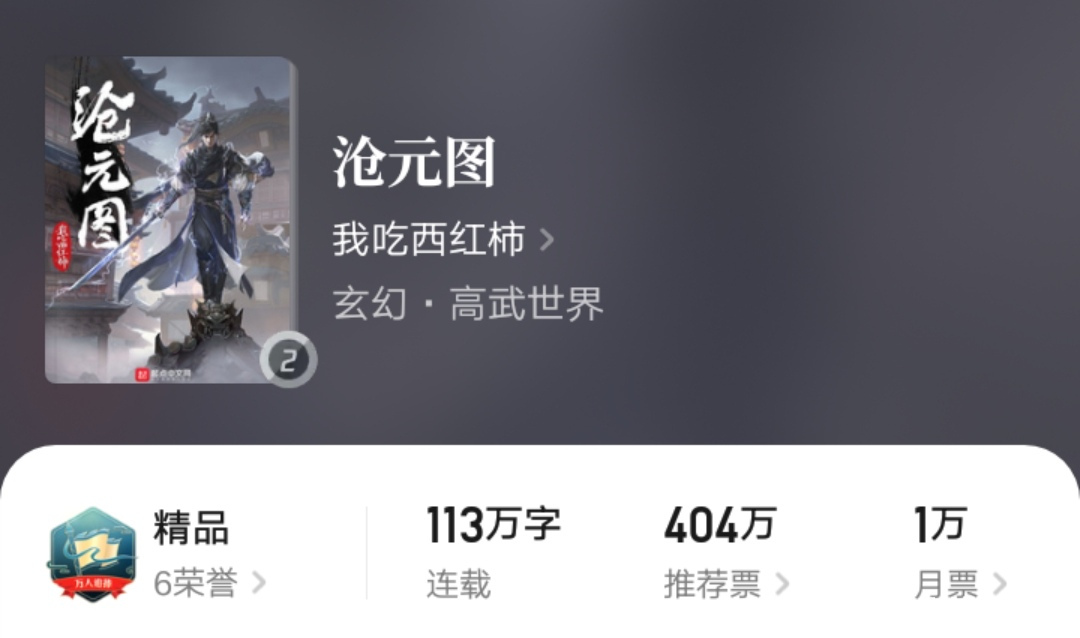 白金作者我吃西红柿在5月23号写完了《沧元图》的第十八集剧情。随后按照惯例请了一天假进行修整。第十九集的剧情将会在25号开始更新。