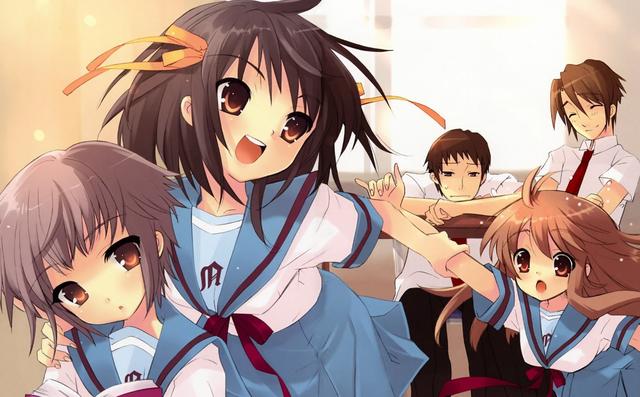 国内绝大多数朋友可能还是先通过的动画接触到这部作品。那时候国内看轻小说和漫画并不方便,虽然也有很多大佬热心做翻译,不过流行的主要还是动画,随着DVD一类的普及,各种刻录满了动画的盗版光盘开始流行起来,我也是通过它们完成了自己的动画启蒙。2006年,京都动画将其改编为动画播出,一时间火遍日本,国内的人气也非常高,那时候买一本动漫杂志,上面必然有这部作品的消息,就算不怎么感兴趣,被全方位的消息轰炸之后,也对这部作品有些许好奇了。