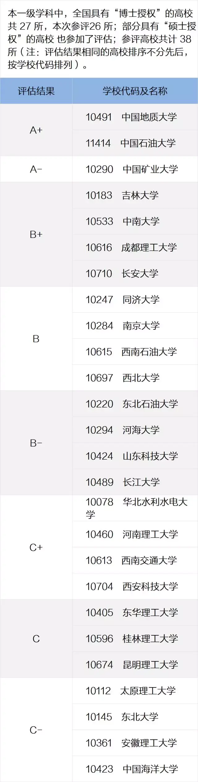 地质资源与地质工程考研学校排名(第四轮学科评估结果)