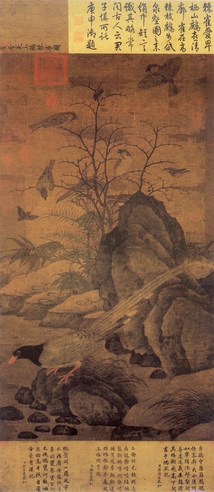 黄居寀 五代/宋 山鹧棘雀图 现藏台北故宫博物院