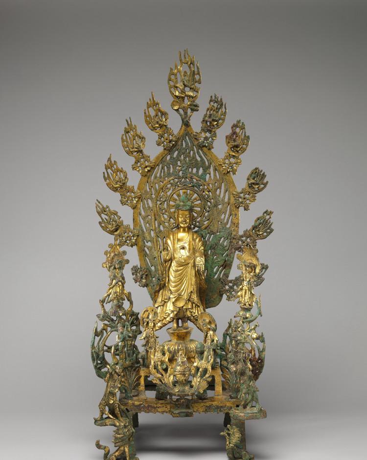 北魏正光五年(524)的鎏金青铜弥勒佛造像是不可多得的珍品。造像保存得相当完整,包括弥勒佛、佛像前和两侧的菩萨、随侍、力士、狮子和佛像身后镂空的背光。佛像通体鎏金,虽历经千年,仍然光彩照人。是北朝青铜佛像的杰出代表。