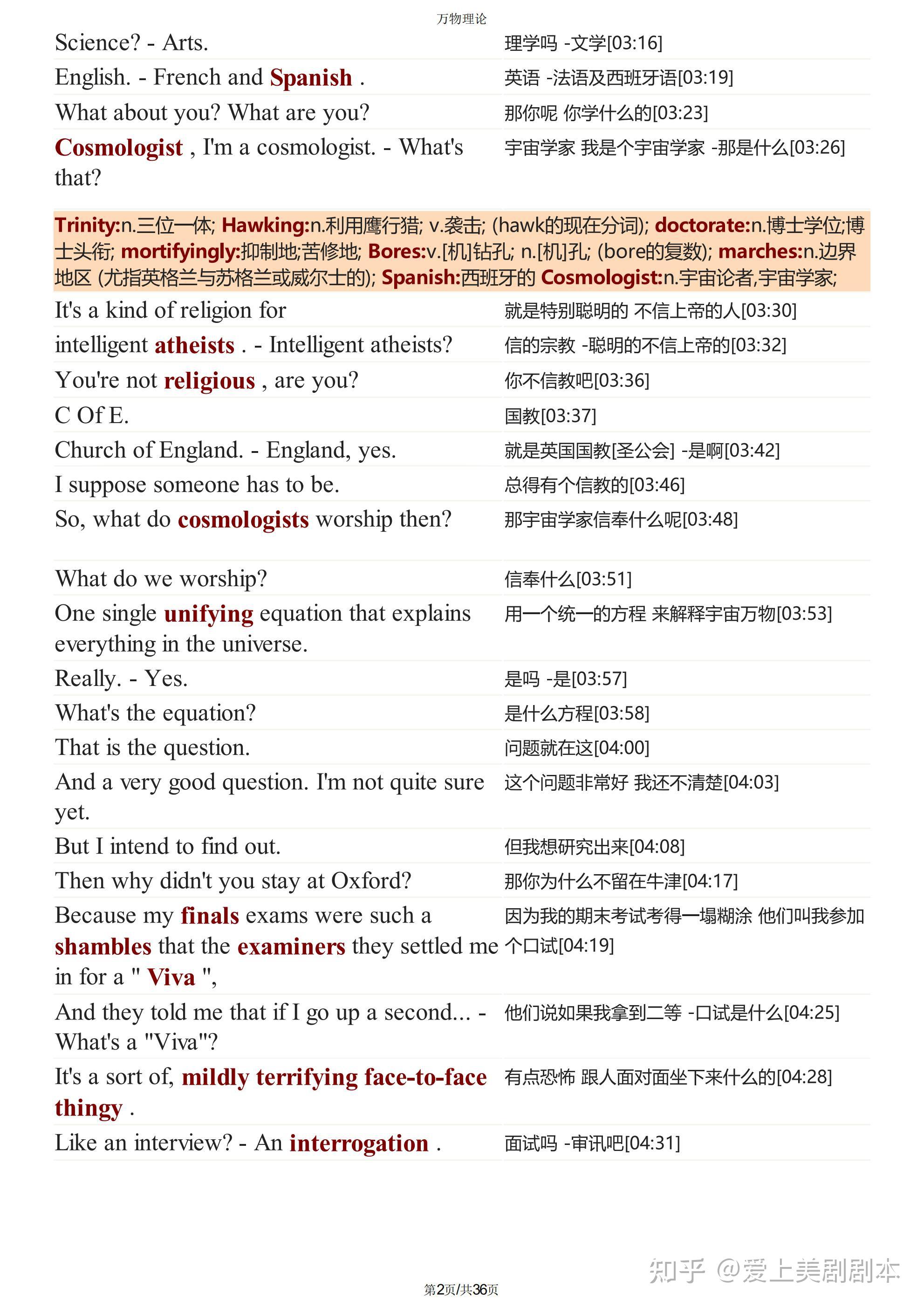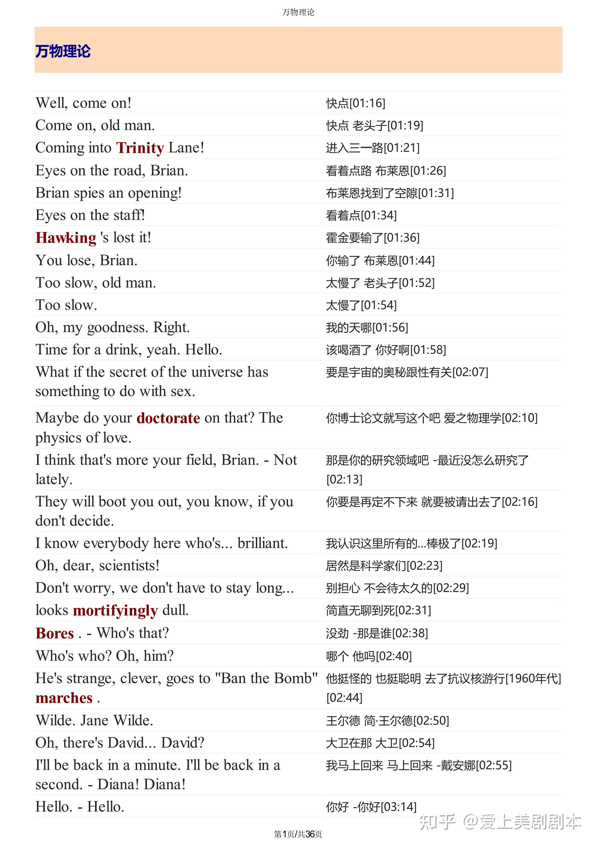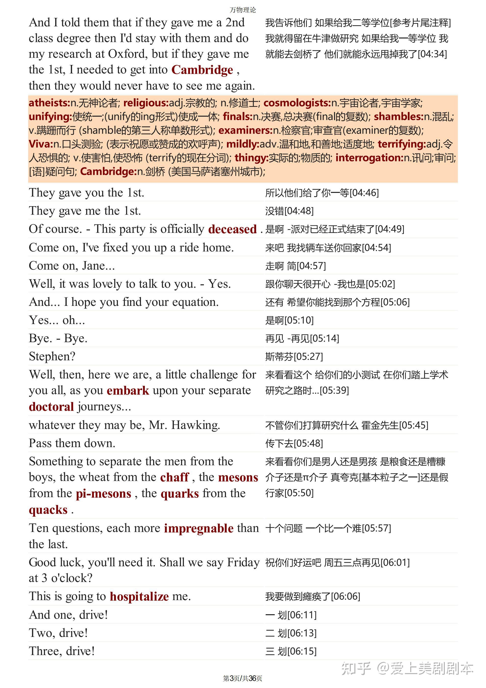 万物理论台词剧本pdf(精排版)+重点单词解析+音频万物理论电影剧本合集