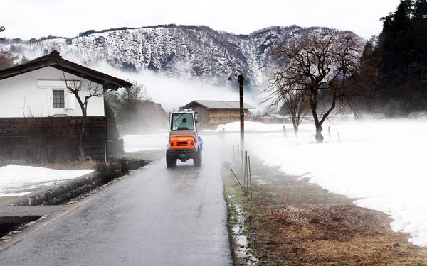 游人离去后,山顶的瞭望台空空荡荡,眼前的角度与无数次在图片上看到的无异。多少人为了追寻梦里家山,迢迢来此,也算是个心愿之地。然而此时冬天已旧,稻田里一半覆雪、一半已消融,斑驳的白,并不纯粹;每家每户都有机械化的微型挖掘机,颜色鲜艳,一两只缓缓跑在路上。这仿佛是《legal high》中保护派与发展派和解的场景,乡村的未来蓝图可被信赖,绝非是一边倒的梦幻与童话。来白川乡所寻找的,归根结底是与真实共情。