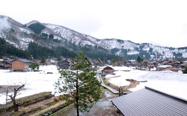 2015年春,关西与北陆已是樱花季,我乘巴士从金泽一路南来,中途气温甚至低到了1度,两侧的山景也逐渐成黑白。然而下车之后迈进积雪覆盖的白川乡,身上却并没有冬天的冷感。