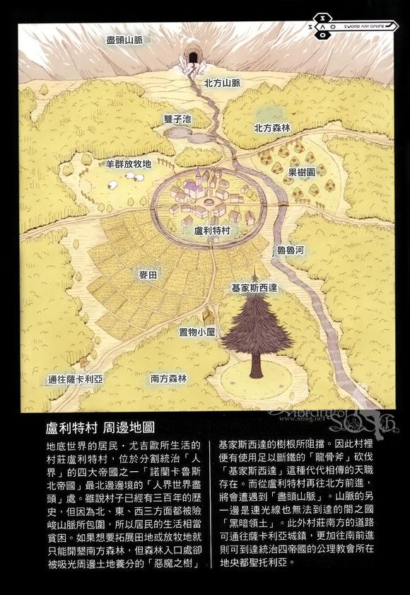 在第九卷的开头,网瘾少年桐谷和人突然重生成了一个普通村民,轶失了有关现实世界的一切记忆,生活在在一座中世纪风格的村庄里,这座名叫“卢利特村”的村庄是这样的: