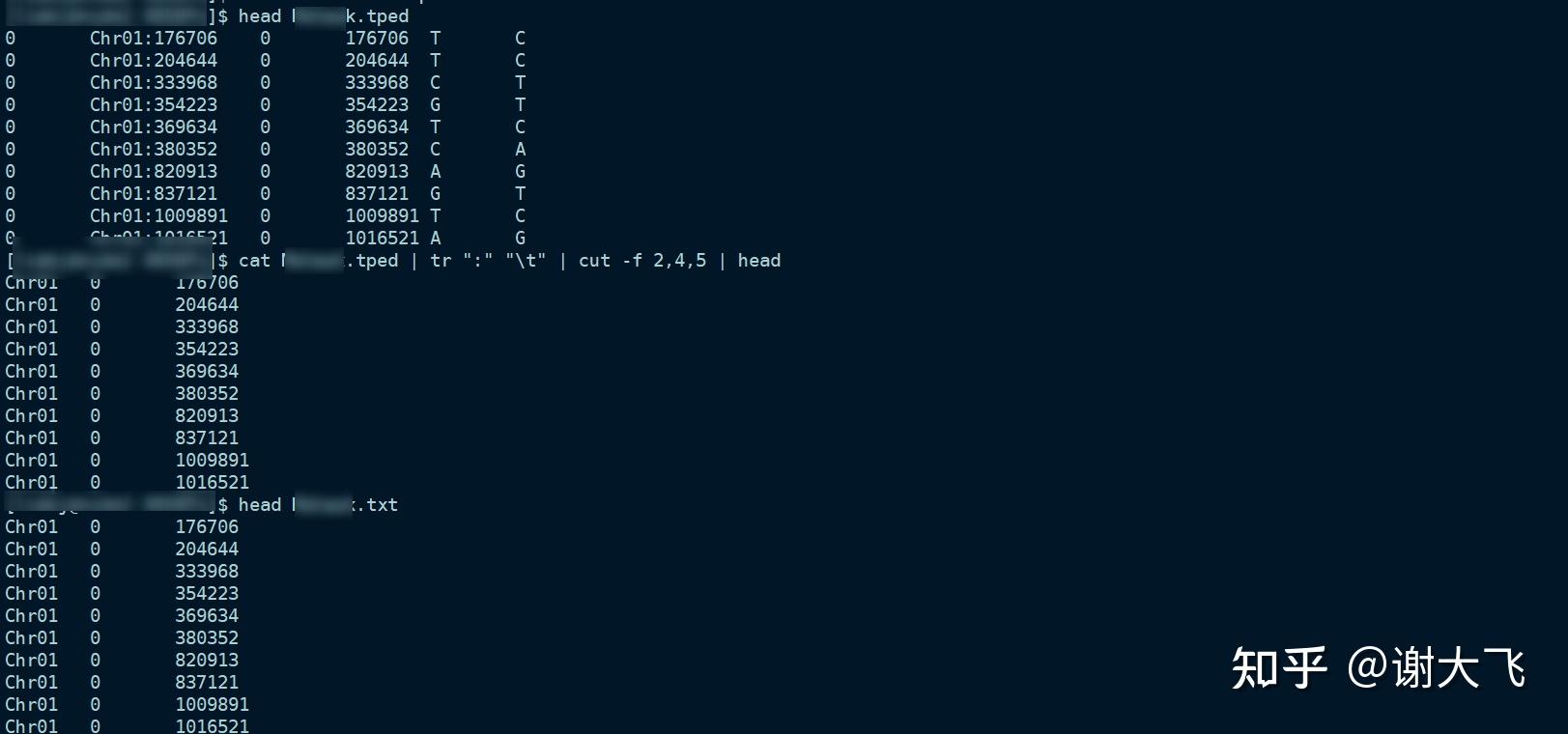 #tr ":" "\t" 将染色体位置信息后的:转换为tab