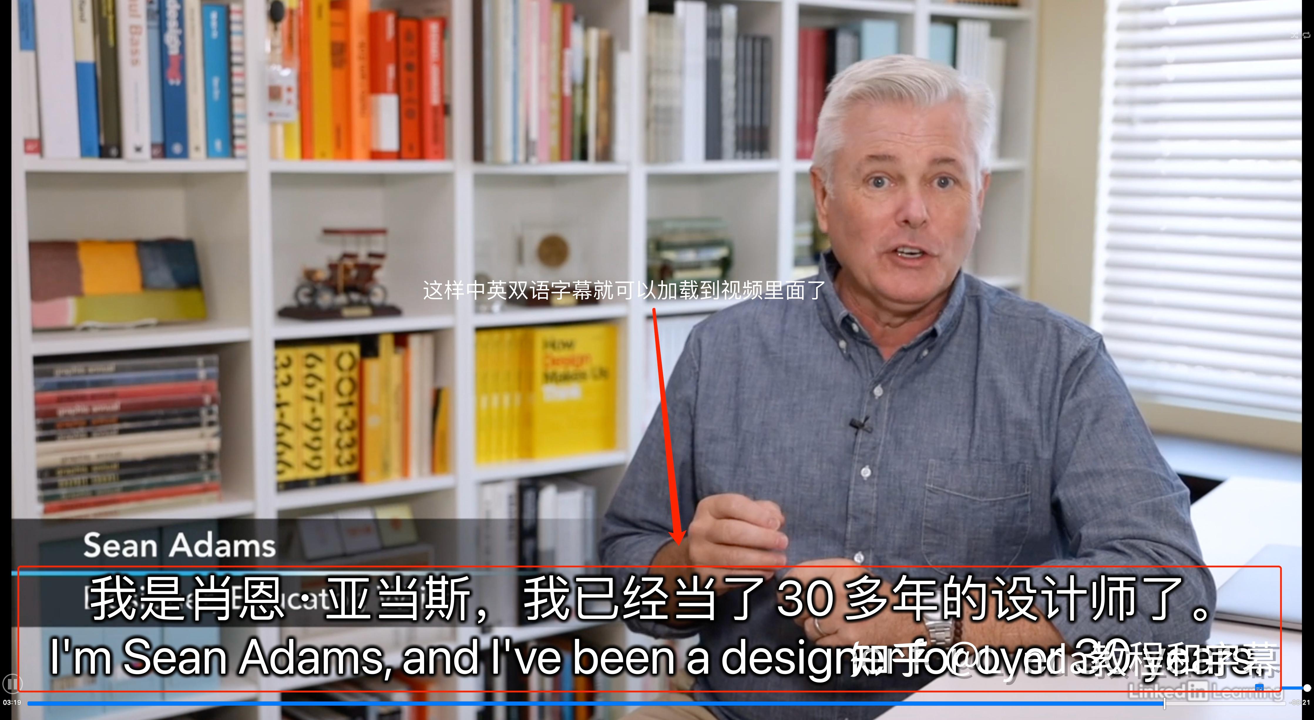 4. 这样中英双语字幕就可以加载到视频里面了。