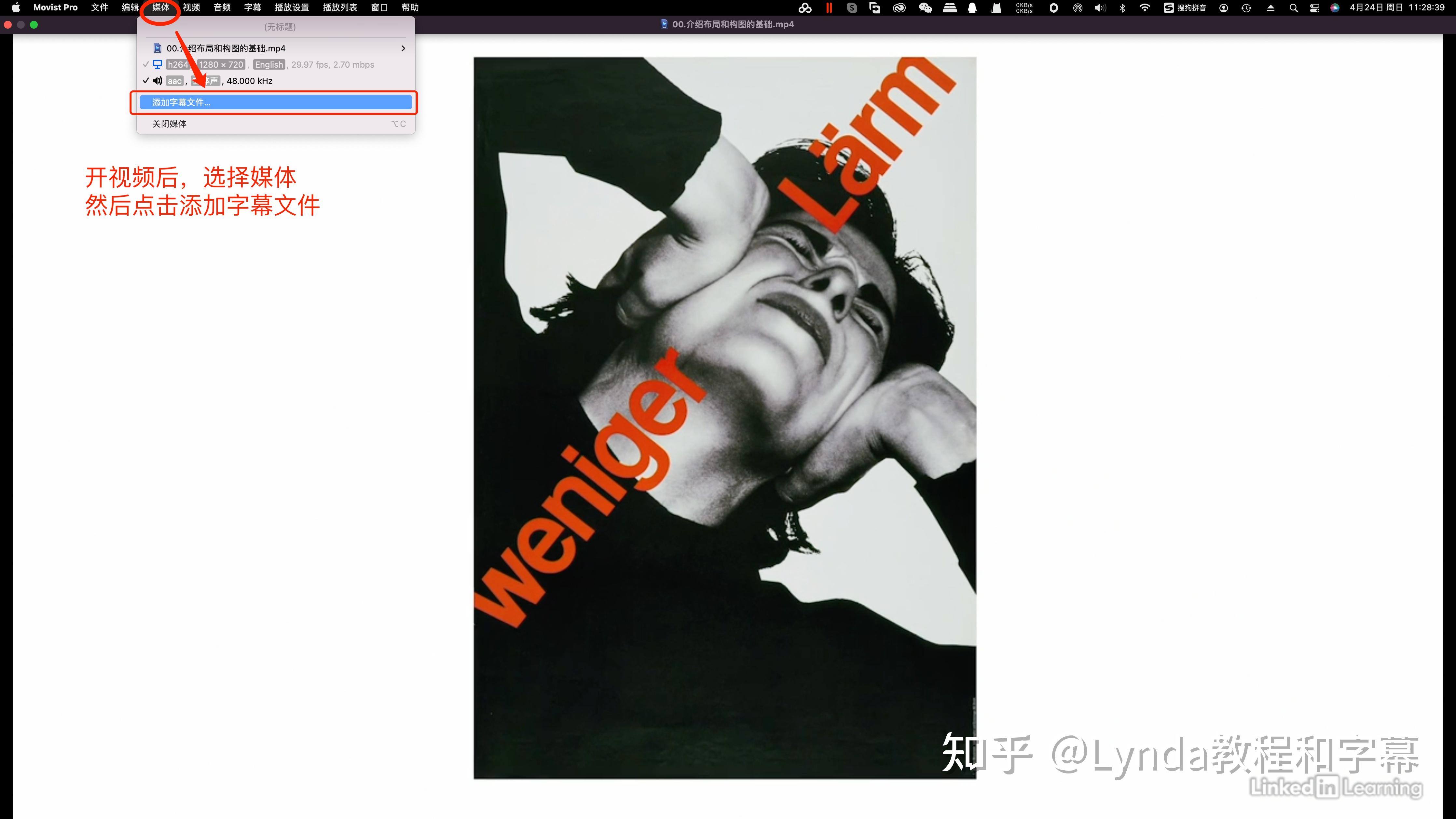 1. 将视频和srt字幕下载到电脑硬盘上。使用播放器打开。我是在MAC系统上以MOVIST PRO播放器为例。其他播放器或者Windows系统,以及其他类型的字幕没有尝试过,应该也大同小异,请自行研究!