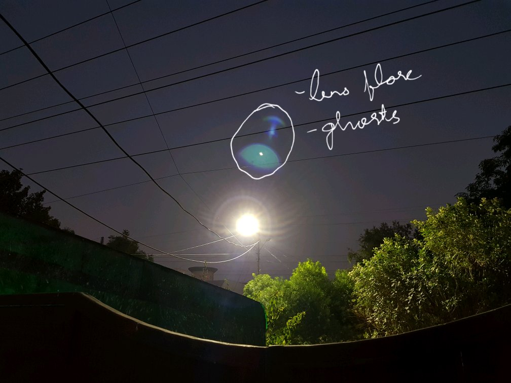 这个东西吧,看个图很容易,下面的大的那块是ghost, 小的是 flare。 这东西的成因也很简单,因为镜头中各个镜片的散射与反射。正常越好的材料及好的设计,会把这些消除的相对好一些。但是不可能完全消除的,不信你把手机对着台灯看一下(不要对太阳,除非不想要相机了),总能在某个角度看到这个东西。如果在镜片中使用蓝玻璃是有可能改善。同样镜片越多,可以改善的机会也越多。但是越厚。