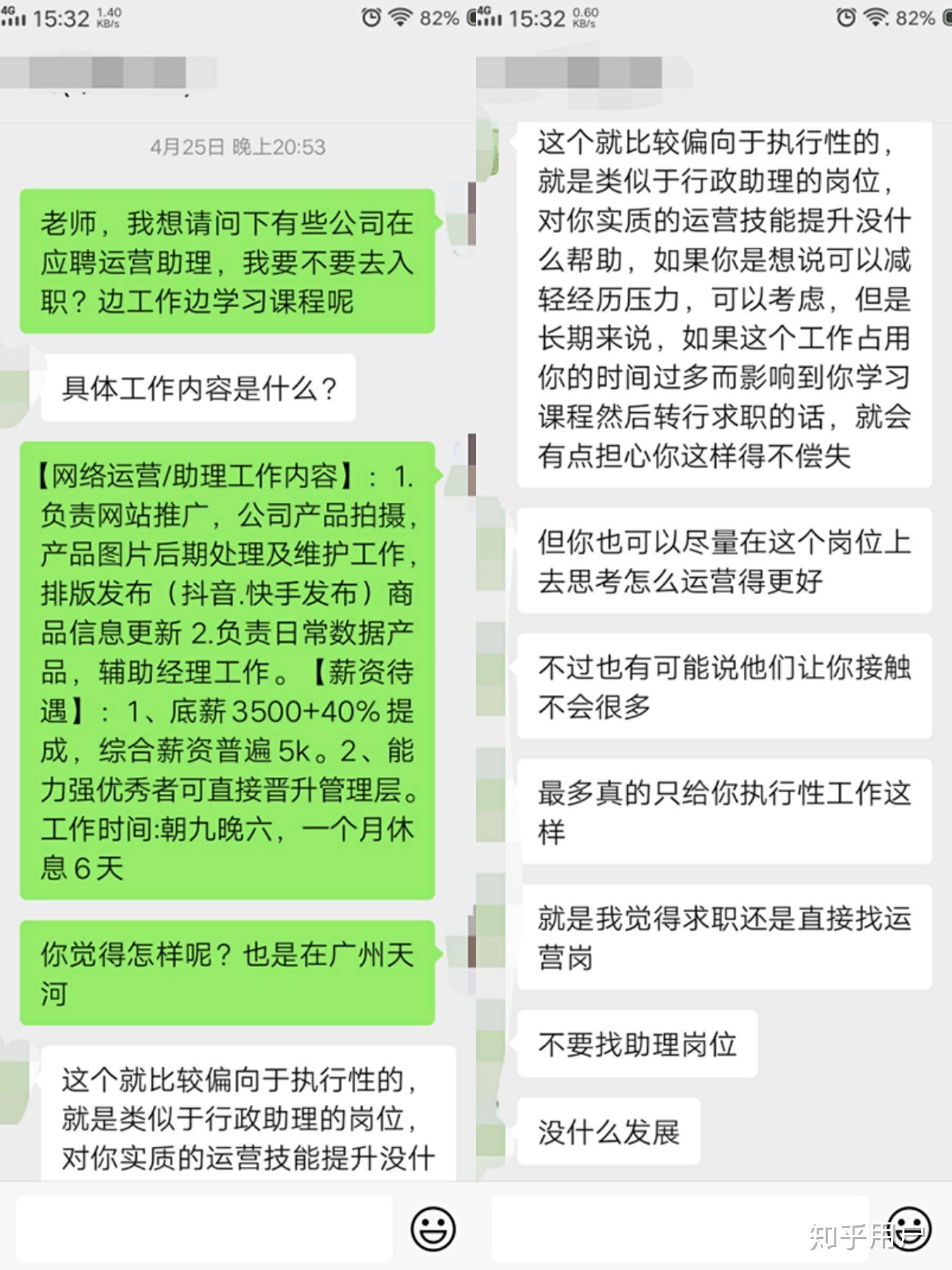 刚开始我是打算去做运营助理的,毕竟能跟着前辈学习还有微薄的收入,但后来我咨询了一个新媒体行业内的老师,她给我分析利弊后我觉得很有道理就放弃去做运营助理了。