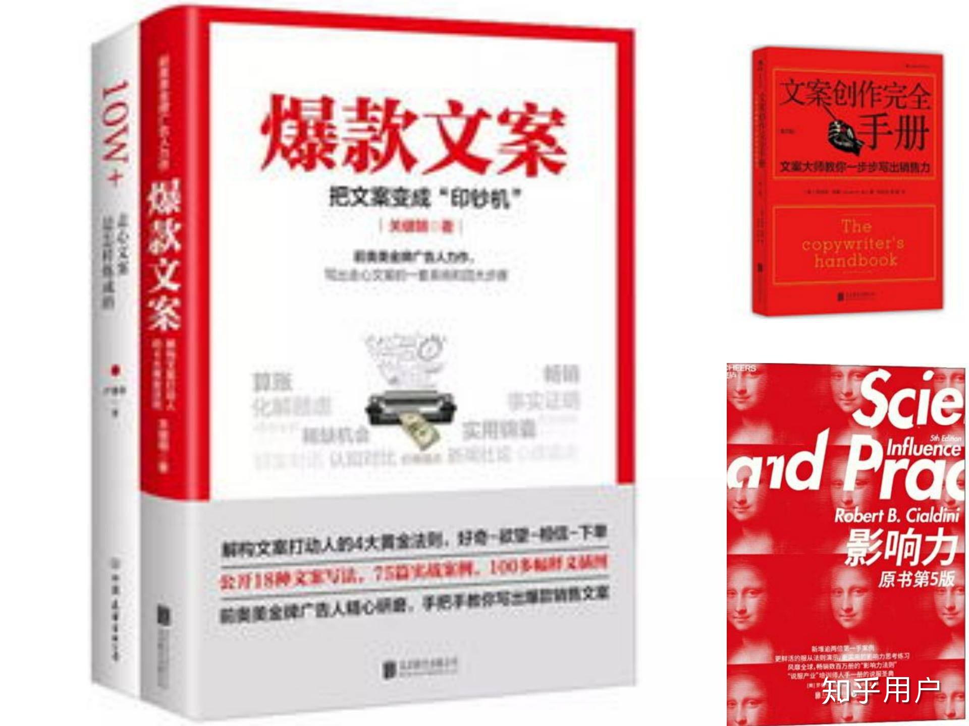写文案是每一个运营者的必备技能,这里推荐书籍 《爆款文案》、《文案创作完全手册》、《影响力》