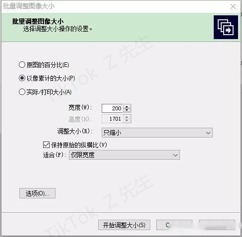 在上图的跳出窗口中,选择宽高1000,保持原始横纵比,一般输出的图大小在200k左右。如果图片还太大,可以选择【选项】按钮,调整压缩比,进行二次压缩。