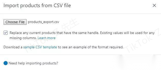 选这个选项后,就会把系统中拥有相同handle的产品信息替换掉。在做这个事情之前,请先选择1-2个产品进行测试,另外导出的产品做好备份,养成备份的好习惯。