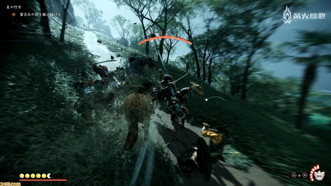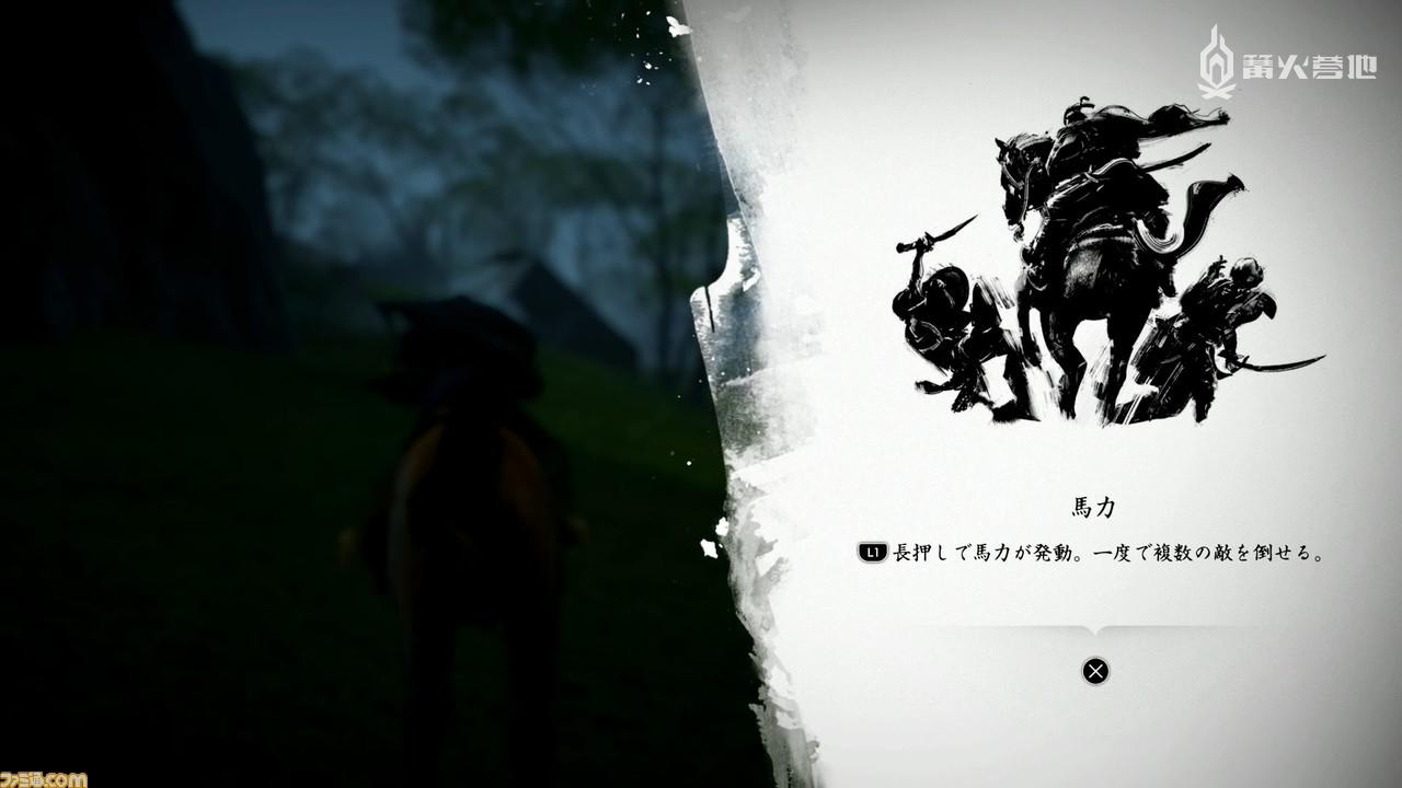 壹岐岛故事初期与境井仁分离的爱马,也在独自求生的过程中悟出了新技能。当它与境井仁再次相遇时,它已经学会了用自己的身体冲撞蒙古兵。之后在骑马跑动时按下 L1 键即可消耗决心点数来发动冲刺。