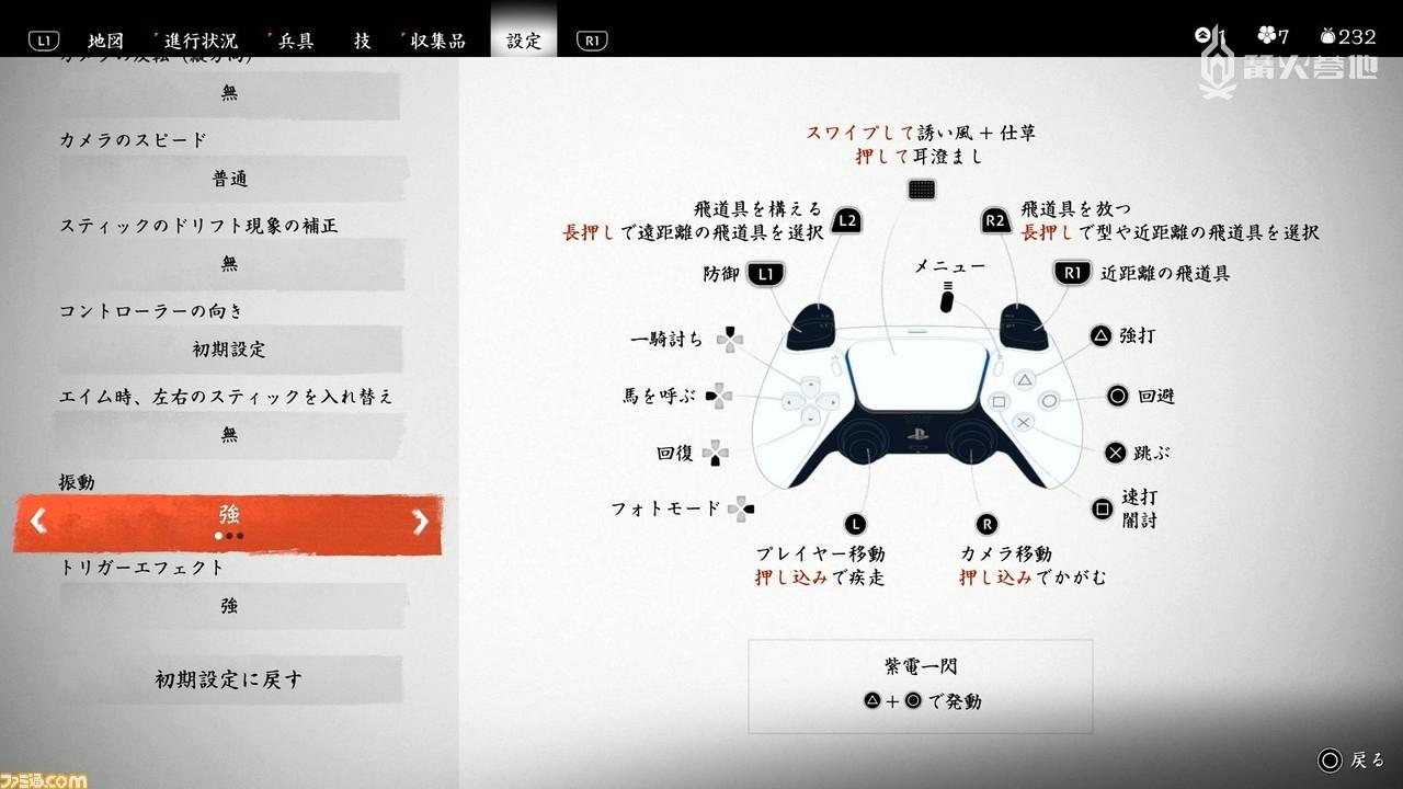 自适应扳机功能则更多运用在弓箭和钩绳的设计上。摆出射箭姿势的 L2 键没有阻尼设置,但按下 R2 键射击时却可以感觉到轻微的回弹感。从这个层面上来说,本作只是简单运用了部分自适应扳机的功能。我想这可能是因为制作组认为本作的重点是剑戟动作体验而非是拉弓的阻尼感吧。