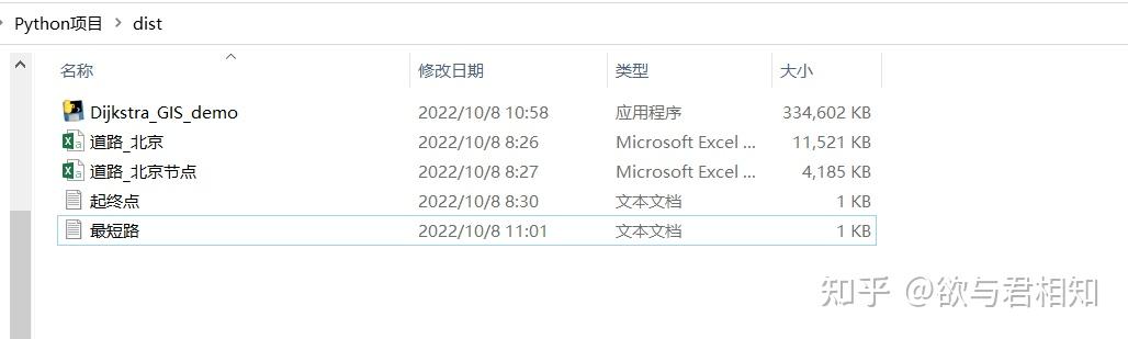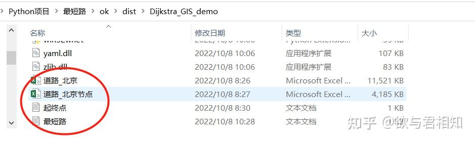 把相关的读写文件如下图后四个(最短路、起终点、道路北京、节点)放到dist里面,exe所在文件夹