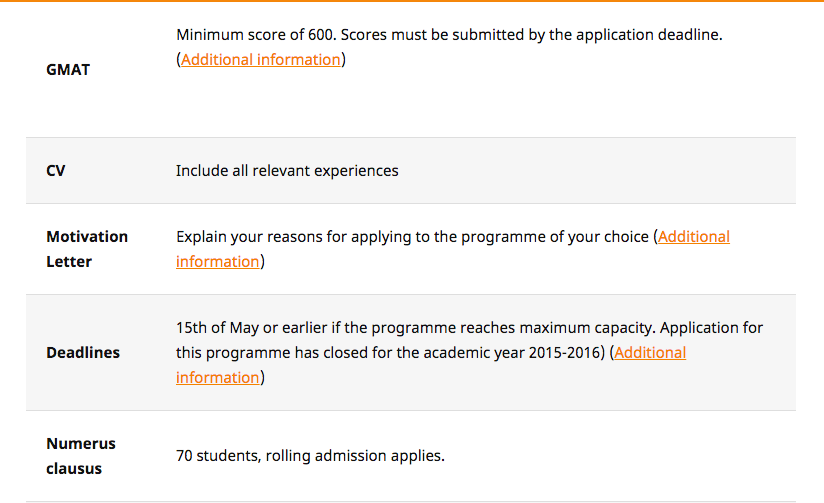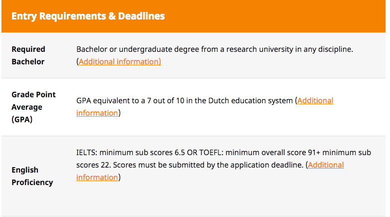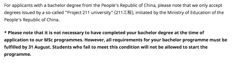 研究生招生网站(同网站也可以搜索到本科招生): Programme specific requirements