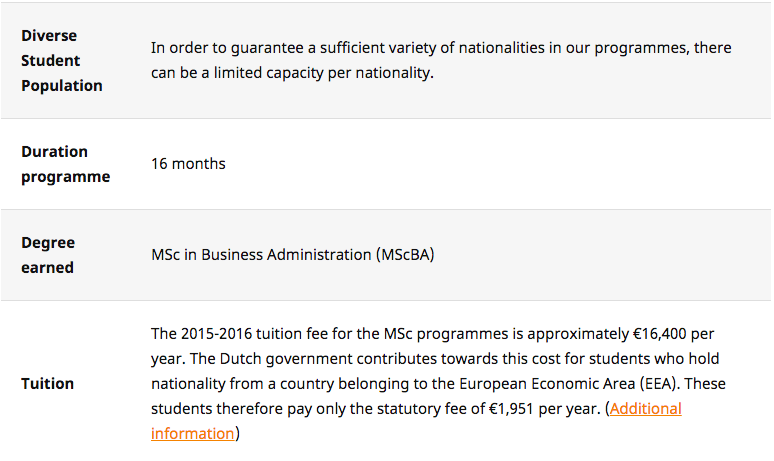 生源:伊拉斯姆斯相对来说生源是很好的,班里同学比例也很均衡40%的本土荷兰人,30%欧洲人,30%欧洲以外的人。这会让学生和各国学生一起学习,语言不会以荷兰语为主导。也有利于接触不同文化。同学多数本科都是各国非常好的学校过来的,也有工作后回来镀金的。可以确定的说这些人中的许多未来会在金融领域崭露头角,或成为风云人物。