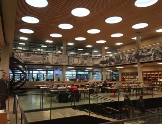 图书馆的氛围非常好,你会看到比你更优秀的人从早晨便携带一杯咖啡入座,然后一呆便是一天奋笔疾书的可能就是昨晚刚从酒吧聚会回来的同学。这里的人会玩,但是更会学习。 在学校的Food Plaza, 你经常能看到小组聚会,聚精会神的分析,争论。