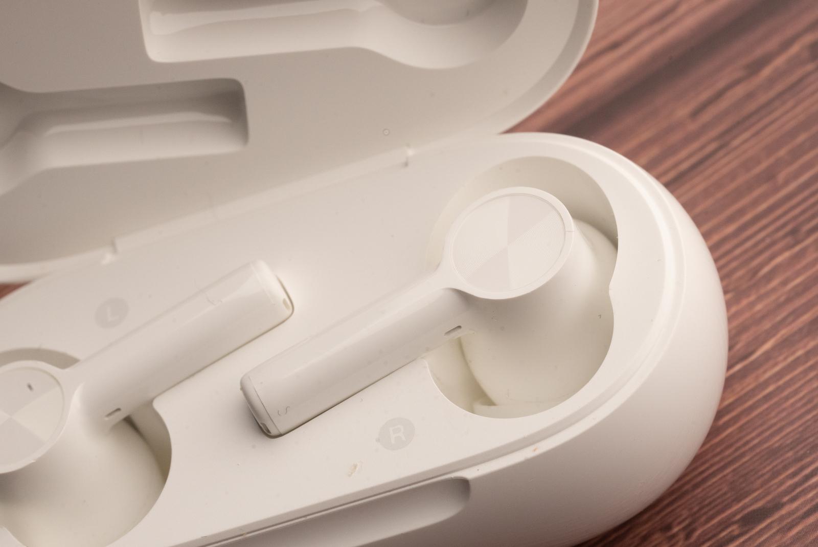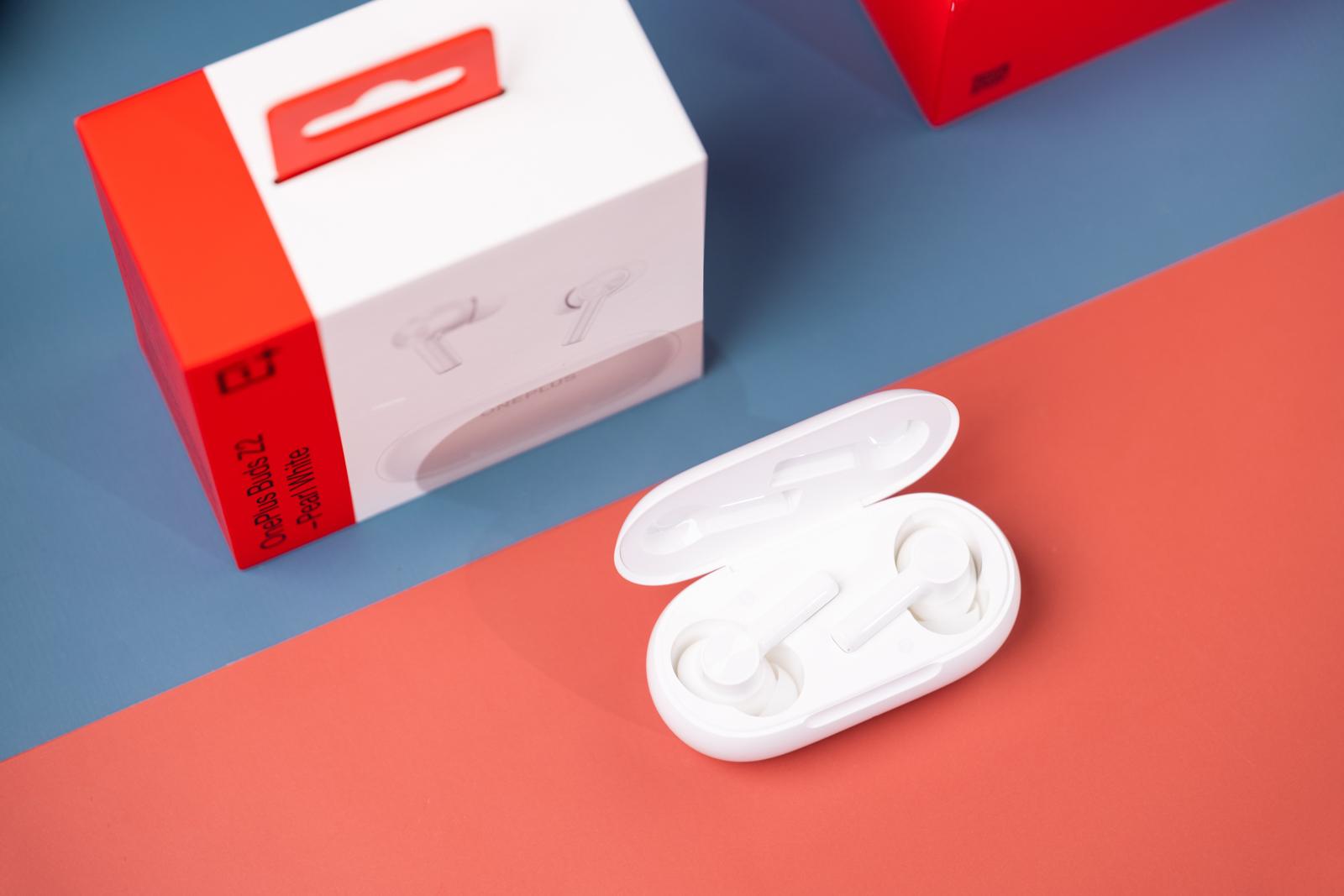 打开盒盖,就能看到经典的约30度斜放的两枚耳机本体。这也是一加 Buds系列的经典设计之一。