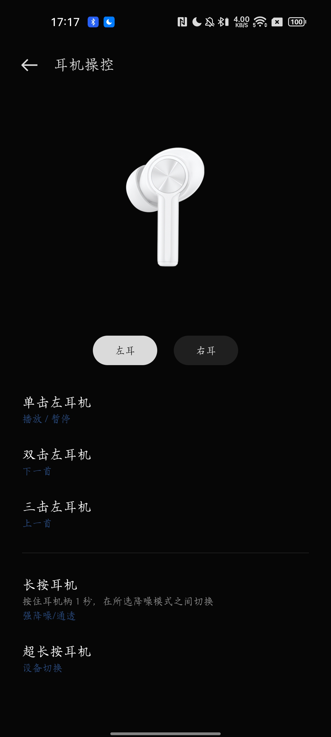 在我看来,保留这一精致且有质感的区域,除了家族式的美学传承之外,更多的是出于交互上的考量:只要触摸到这部分CD纹,就能借助手势操作实现降噪和通透模式之间、播放与暂停音乐之间的切换操作,也能接听或者挂断电话,非常方便简单,同时也不容易误操作。当然,你也可以根据自己的使用习惯,在设置中进行调整。
