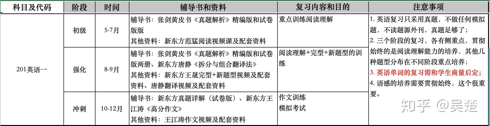 当然,每个人还需要根据当时的复习情况和自身的特点做动态调整。