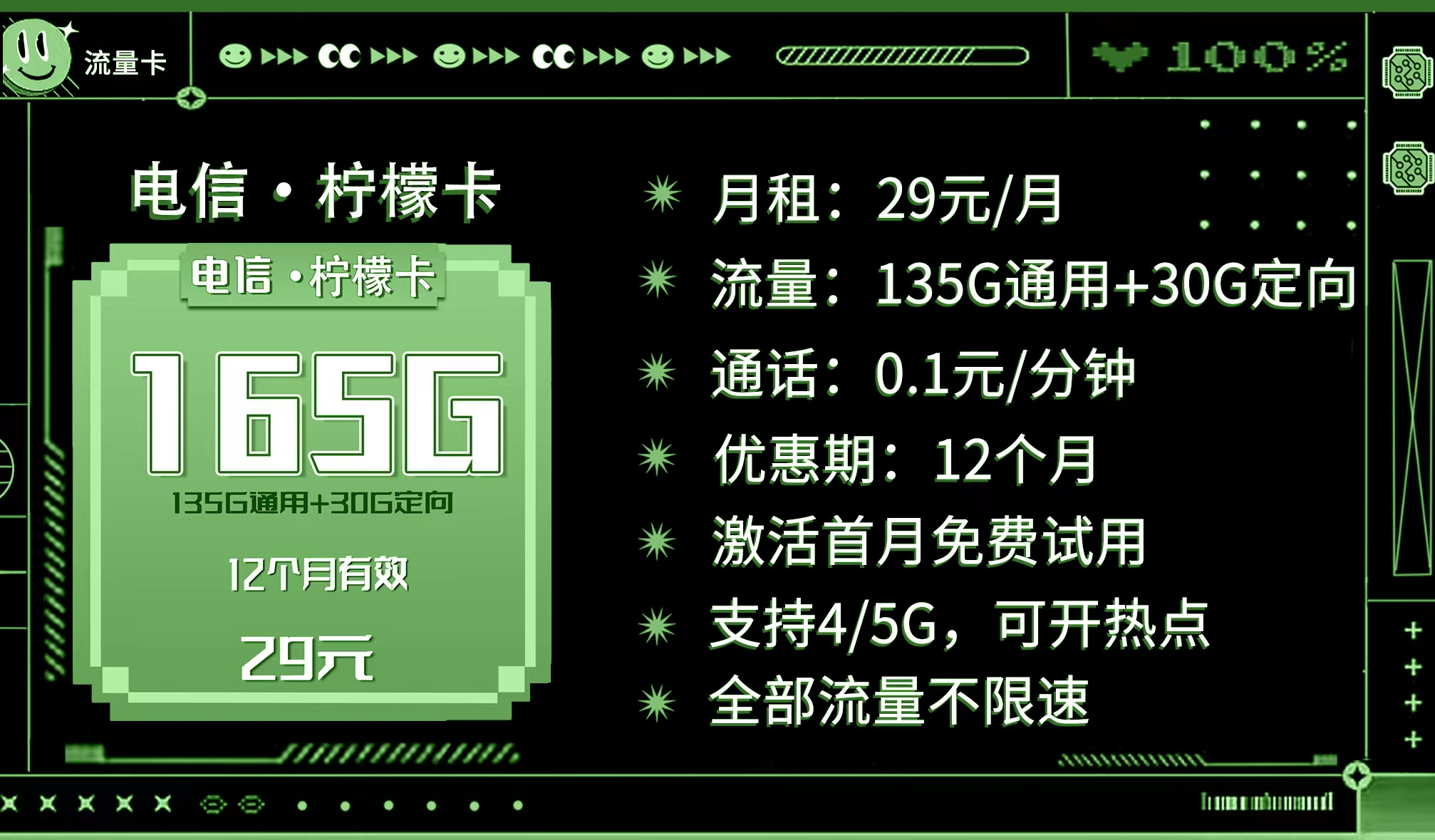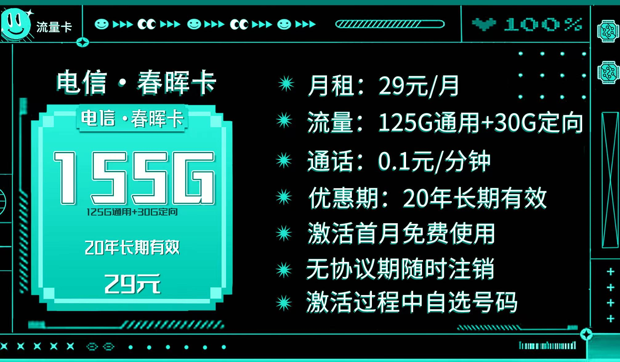 这张卡首月是免月租的,首年内每个月都可以享受到29元155G的套餐,一年之后之后就变更为普通套餐了,就不划算了。