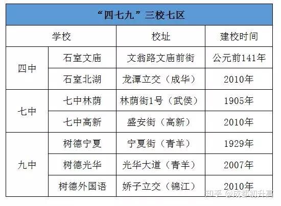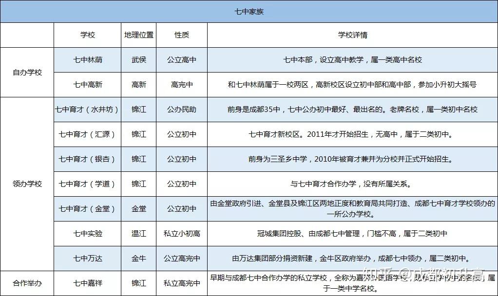 上面表格很直观了,成都七中其实只有两个亲儿子: 老大七中林荫校区 和 幺儿七中高新 。