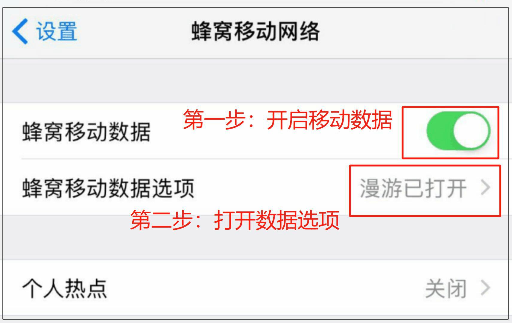 另外,还需要点击【 蜂窝移动数据选项 】—开启【 数据漫游 】