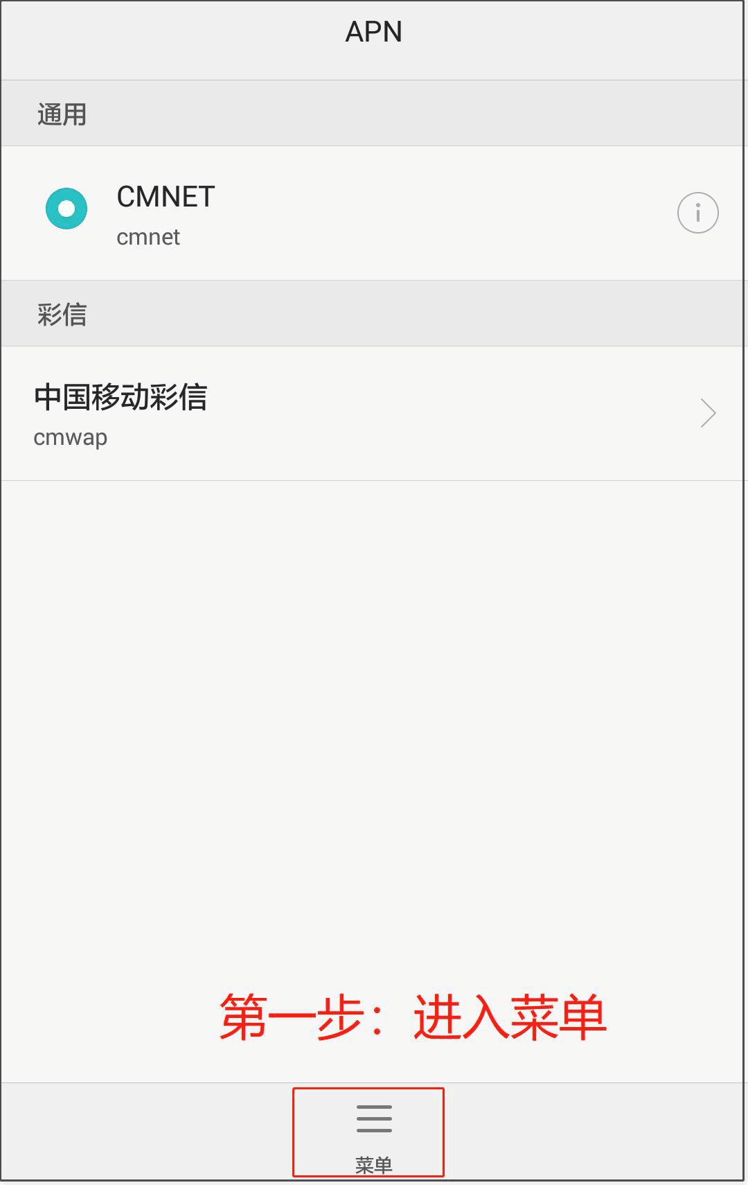 注意:如果这里接入点名称应该为cmnet,如果不是在还原后进行设置!