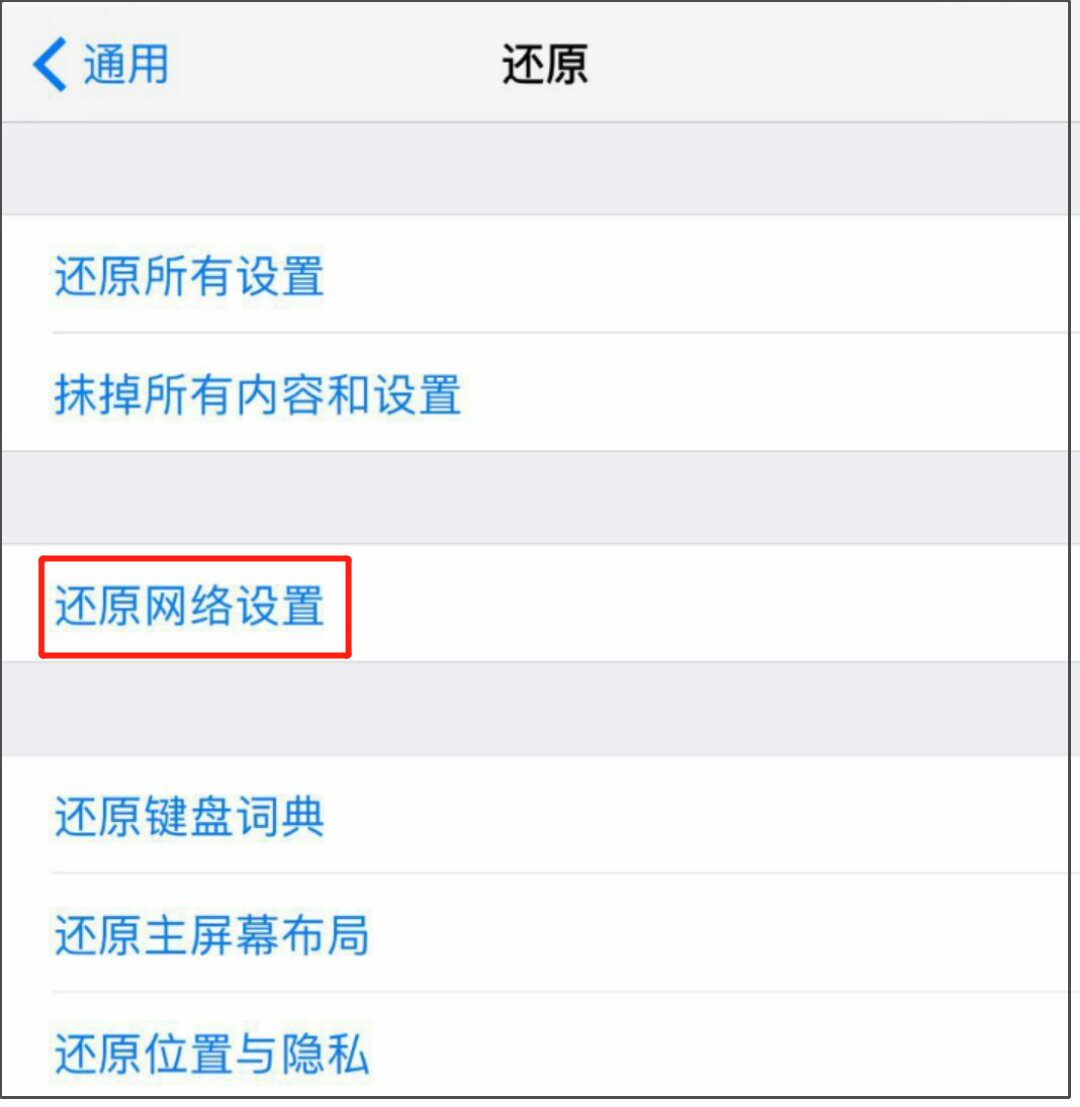 iPhone手机操作流程 :打开手机【 设置 】—点击【 通用 】—拉到最底部点击【 还原 】—选择【 还原网络设置 】