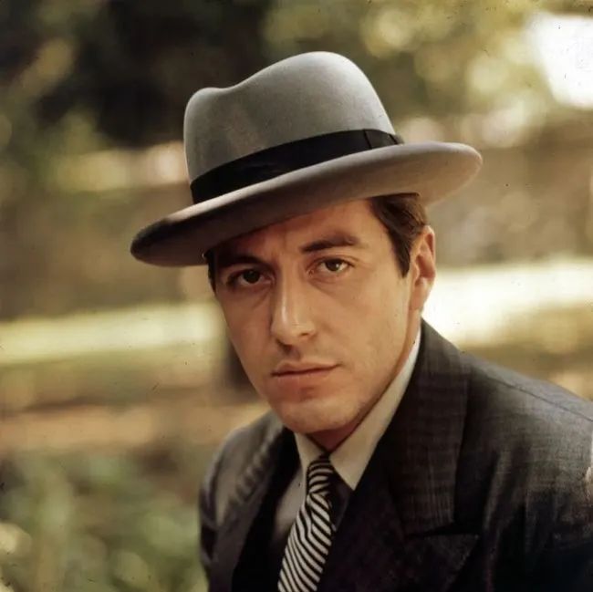 被称作“男人的圣经”,电影《教父》中的迈克·柯里昂,一身西装搭配Fedora帽,展示优雅绅士,又透露着一股冷峻气息。