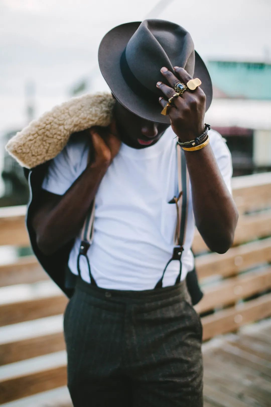 Fedora重新变成男性普遍戴的帽款,其中黑色和灰色的Fedora帽最受欢迎。虽然Fedora帽起源于西装搭配,但又因为随意的设计,和各种类型的服饰搭配起来也毫无违和感。比如风衣、马甲、衬衫、针织衫,甚至短袖、皮衣等更休闲街头的单品。